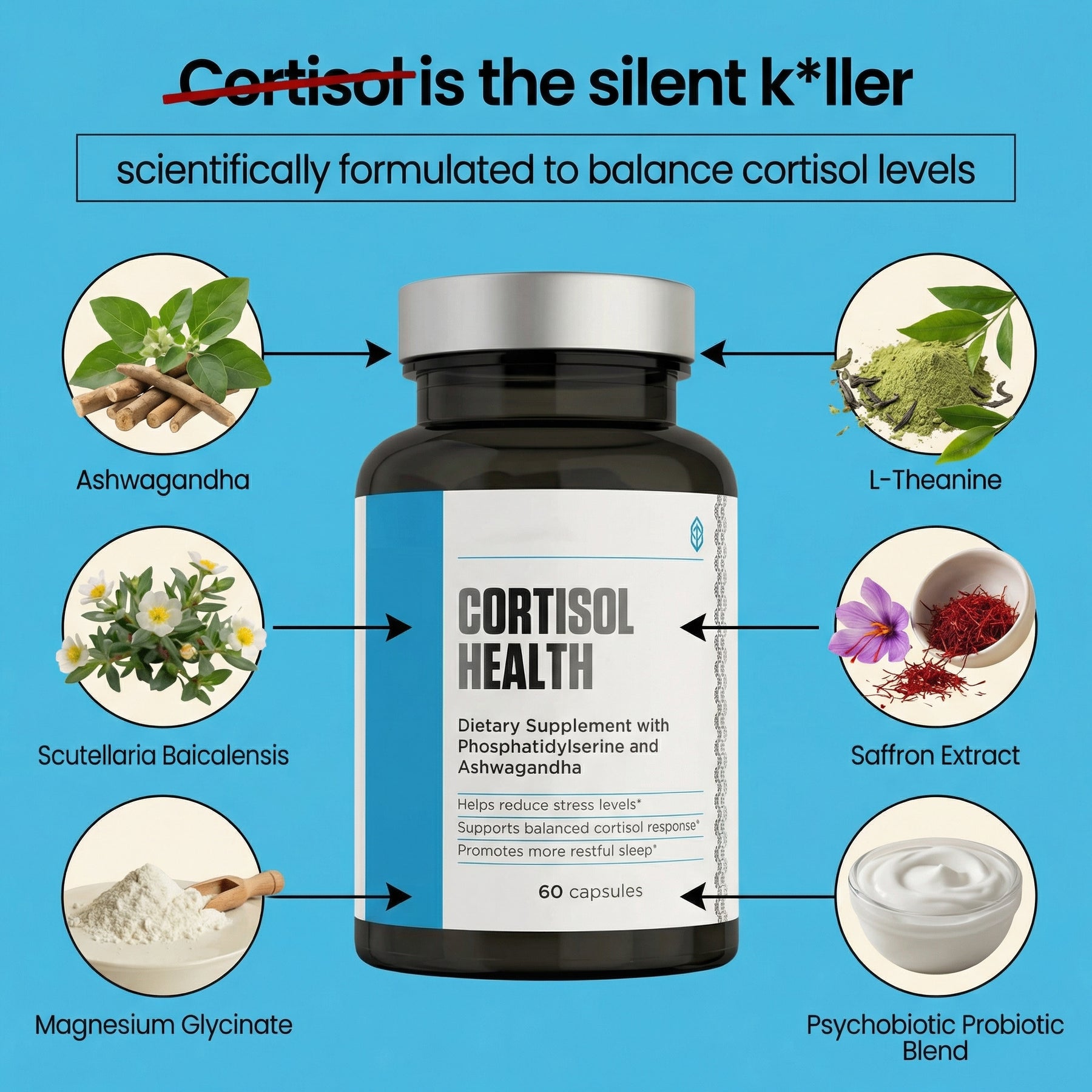 Corti-Help contains ingredients like Ashwagandha, L-Theanine, Magnesium Glycinate, and others that are generally well-tolerated and have been studied for stress support.